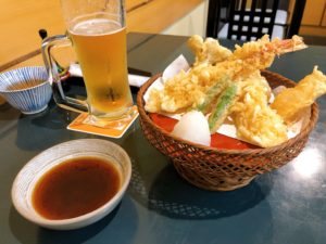 天ぷらと生ビールで乾杯。
