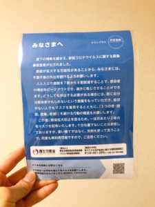 ▲ついにマスクが我が家にも届きました!日本政府、ありがとうありがとう^^