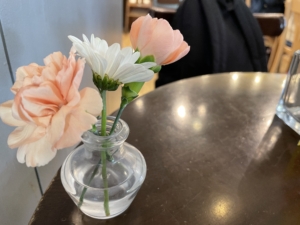 ▲フレッシュネスバーガー、全テーブルに生花が活けてあった♡すごい〜!